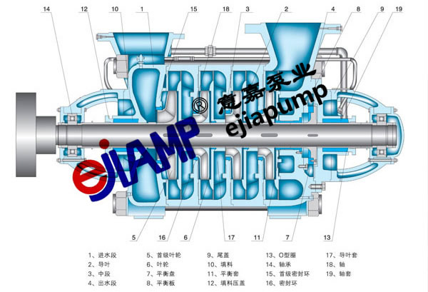 D型臥式多級(jí)離心泵結(jié)構(gòu)說(shuō)明:
