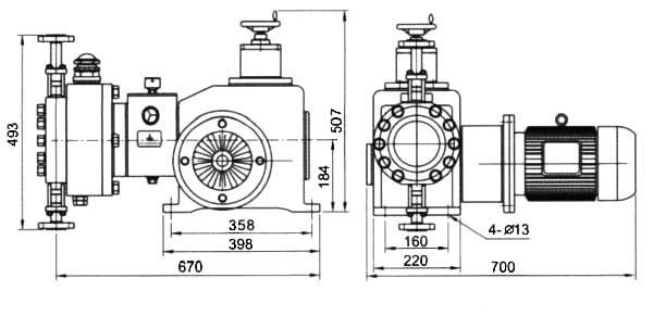 DY-D型液壓隔膜式計(jì)量泵的外形安裝尺寸圖