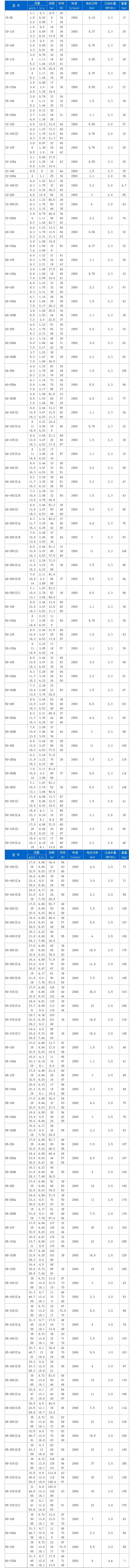 YG型防爆立式管道泵性能參數(shù)表: