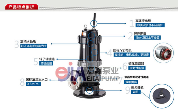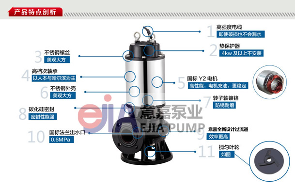 三、JYWQ自動(dòng)攪勻潛水排污泵產(chǎn)品特點(diǎn):