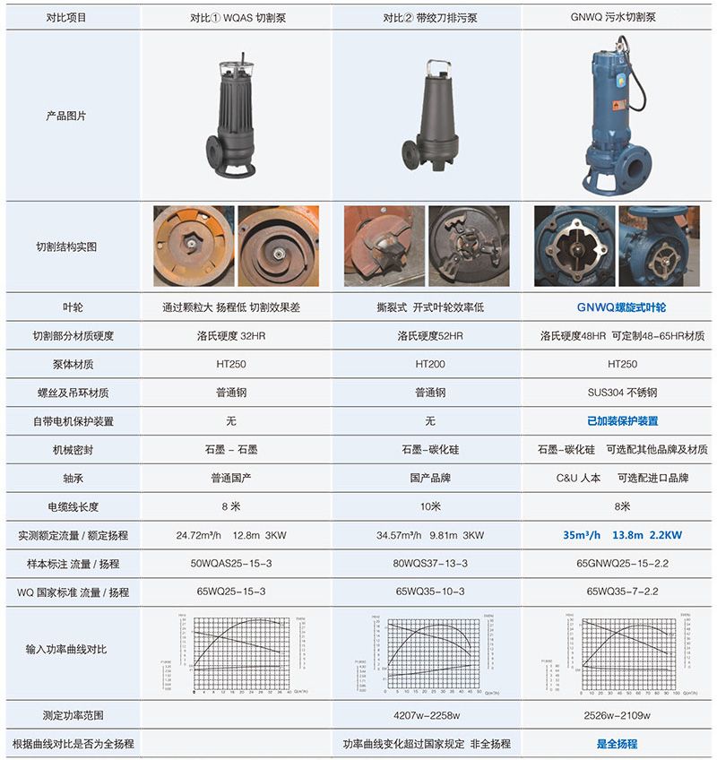 GNWQ切割排污泵與市場上其它切割泵的對比